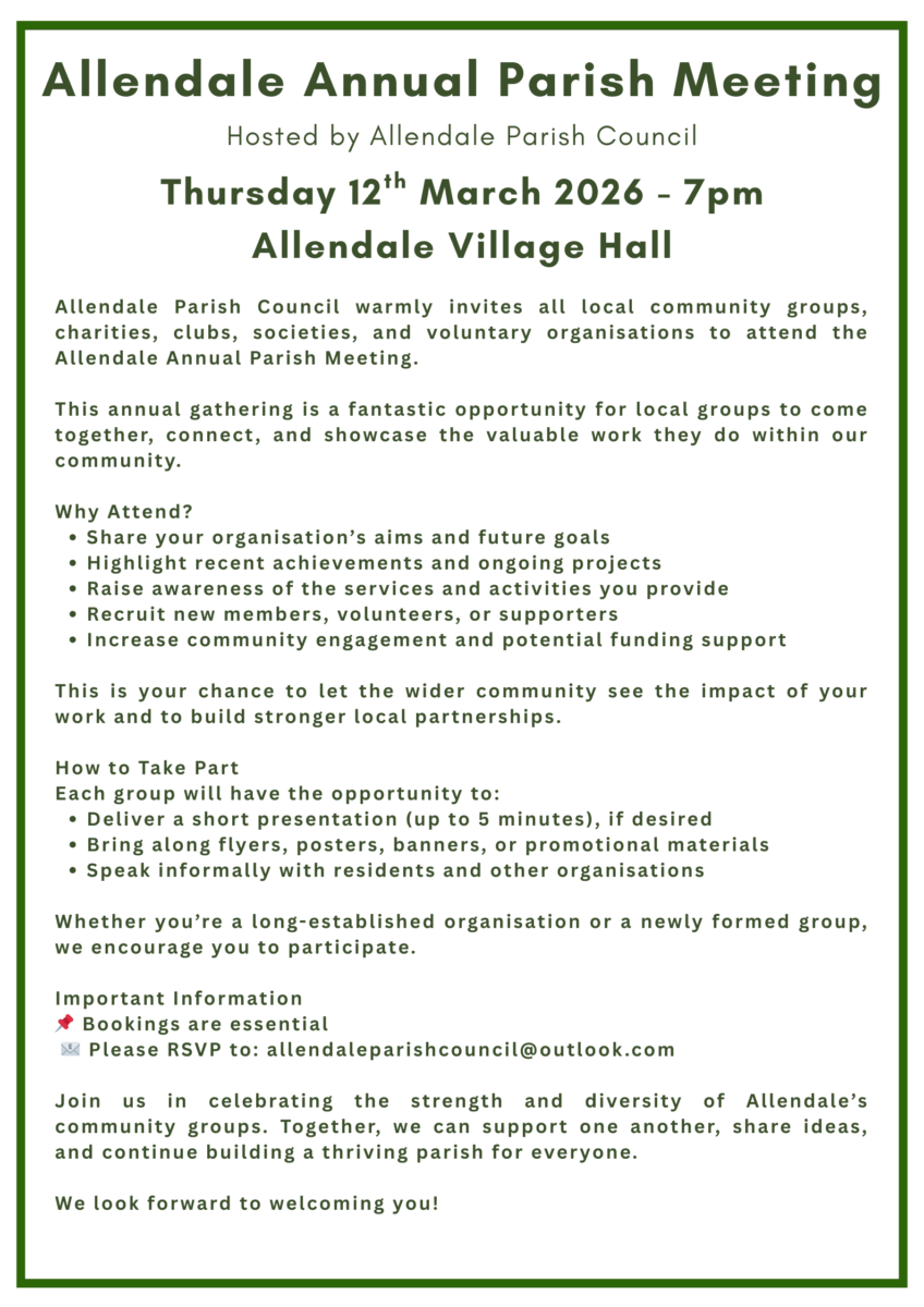 Click here to sign up as a Friend of Allendale Village Hall