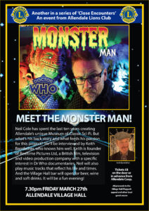 Allendale Lions: Close Encounters – Meet the Monster Man! Calendar When: 27th March 2026 @ 7:00 pm – 10:00 pm 2026-03-27T19:00:00+00:00 2026-03-27T22:00:00+00:00 Where: Small Hall and bar Contact: Peter Aldcroft Community Event Fundraising