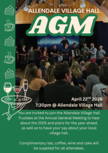Allendale Village Hall AGM starts 7.30pm all welcome