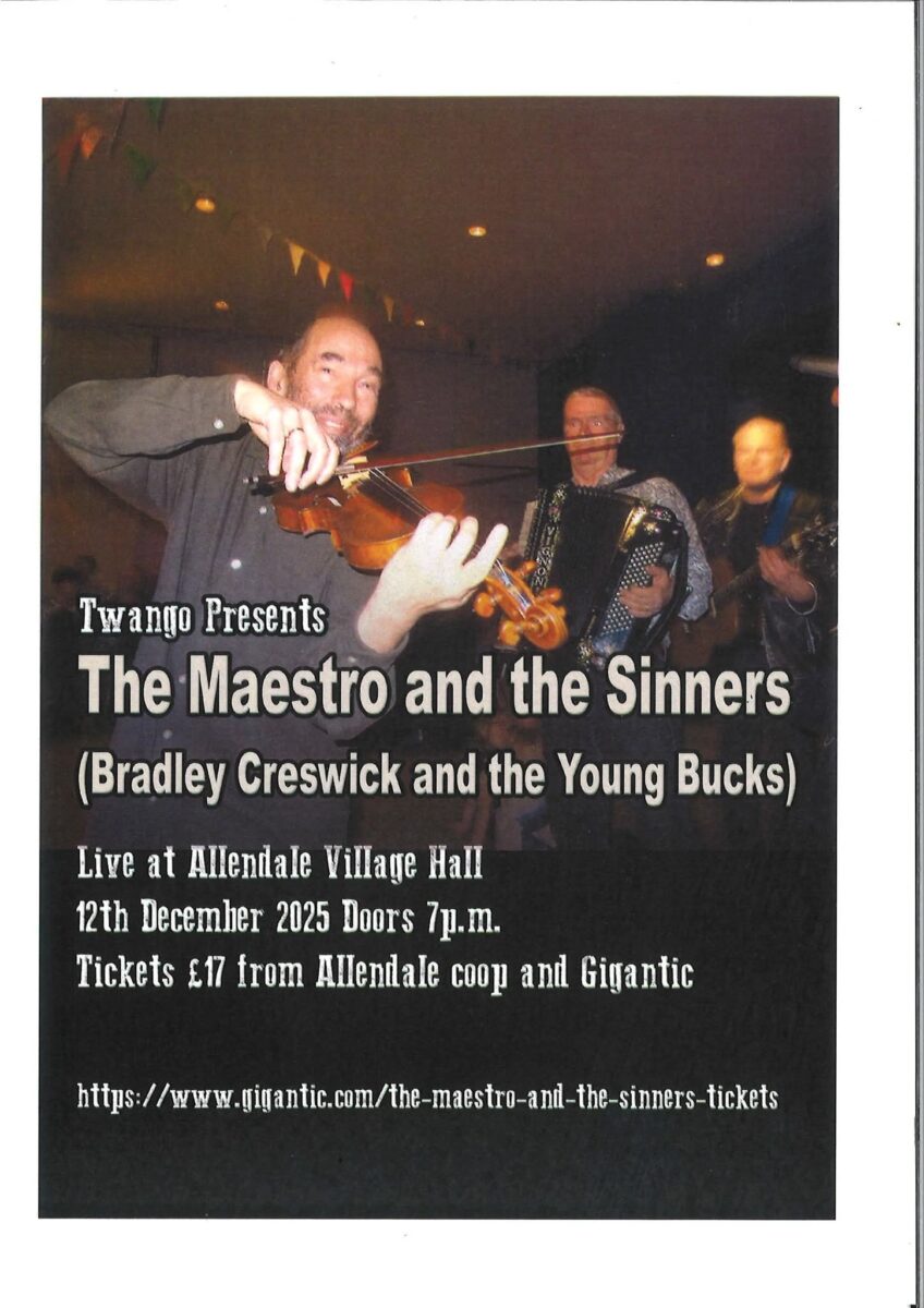 The Maestro and The Sinners Calendar When: 12th December 2025 @ 5:00 pm – 10:30 pm 2025-12-12T17:00:00+00:00 2025-12-12T22:30:00+00:00 Where: Main Hall OR Small hall Contact: Phil Ogg 07974649719 Email Music